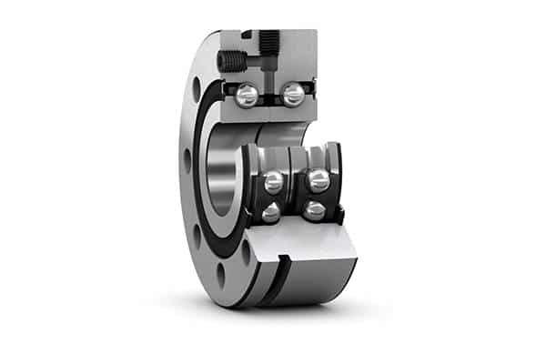 O rolamento axial de esferas de contato angular possui variáveis de modelos para aplicações que exijam cargas axiais altas em ambas as direções. Sobretudo que forneçam um alto grau de rigidez de sistema. Também podem acomodar velocidades mais altas.